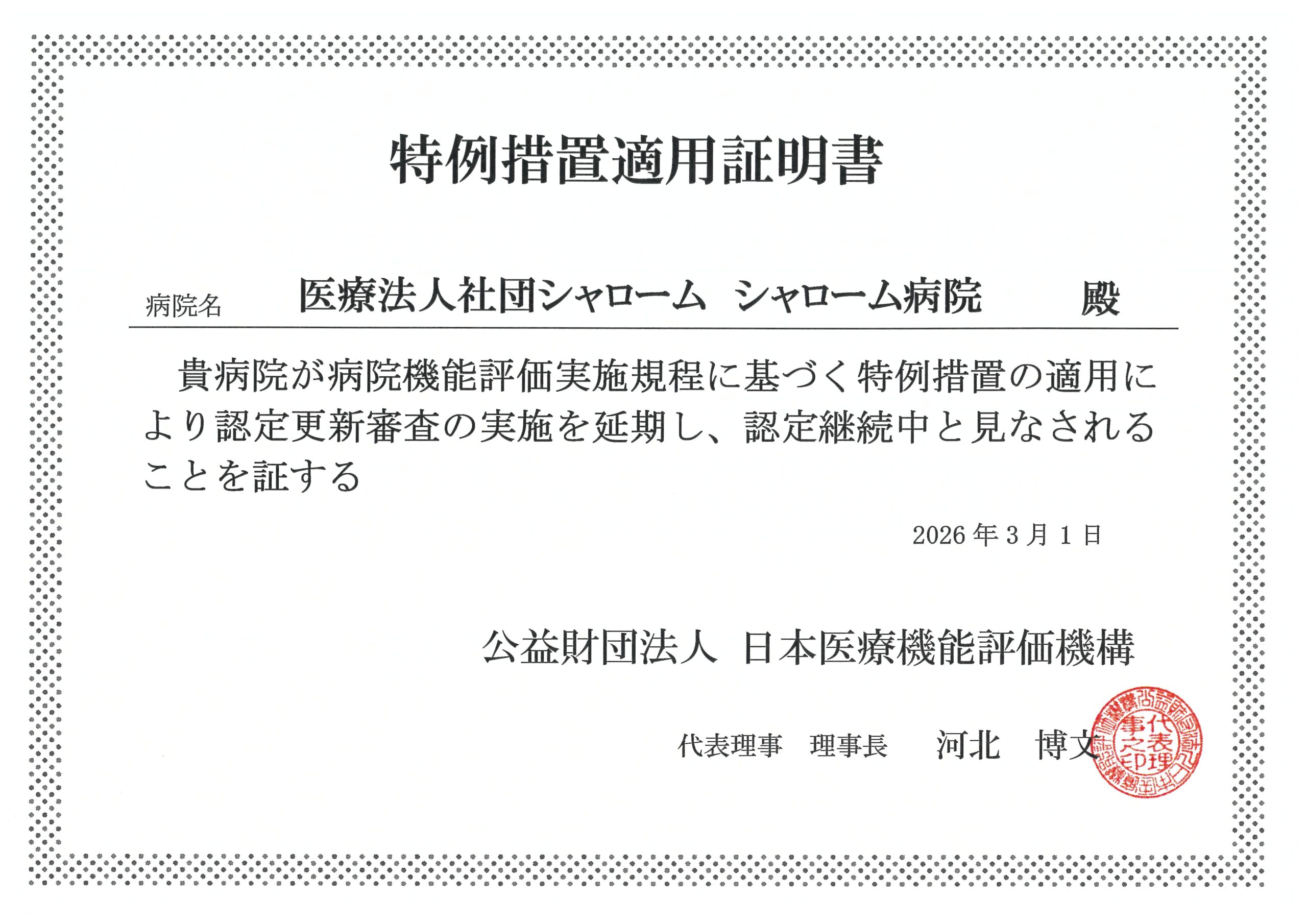 当院は、公益財団法人日本医療機能評価機構が実施する